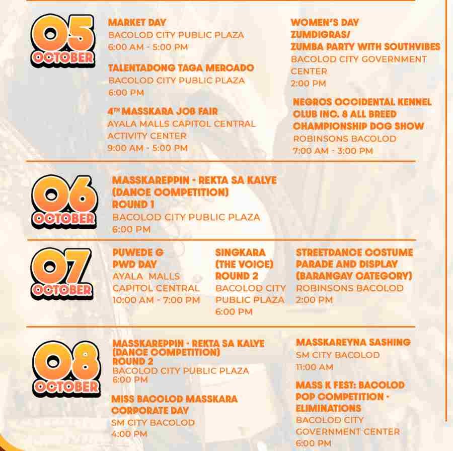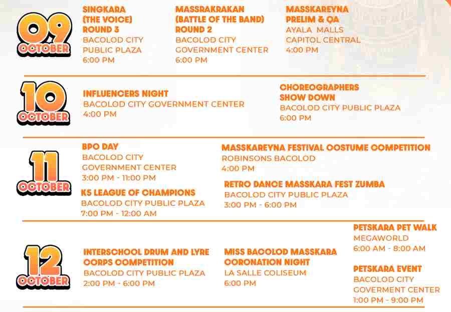 Masskara Festival Schedule of Events  2025