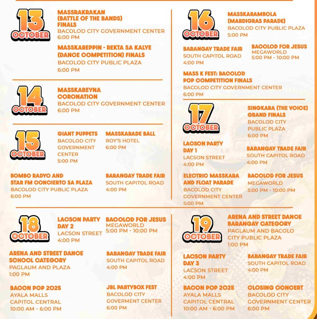 Family Adventures: Masskara Festival & Bacolod’s Best-Kept Secrets | Schedule of Events